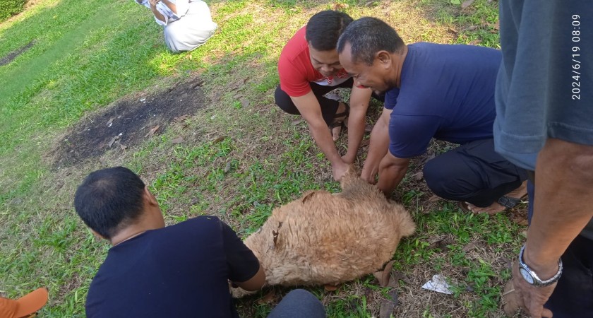 Rabu, 19 Juni 2024 Siswa/i, guru dan staf SMAN 1 Gunungsindur melakukan pemotongan hewan qurban di sekolah yang terdiri dari 1 ekor sapi, dan 2 ekor kambing/domba.